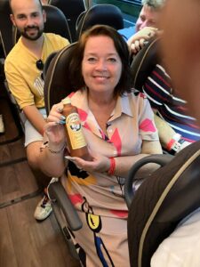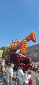 Aangekomen in Zundert werden we bij de tribune op de Bredaseweg opgevangen door speaker Jeroen. Speciaal voor ons en voor de al aanwezige bezoekers op de tribune, vertelde Jeroen ons meer over de achtergrond en de oorsprong van het Bloemencorso dat dit jaar voor de 82e keer door Zundert trok. We leerden meer over de buurtschappen, het bouwproces en de betekenis van dit cultuurgoed en wat dit betekent voor de Zundertenaren. Voor hen is er de periode vóór en de periode na het corso. Na het corso is het bij wijze van spreken “Nieuwjaar”. En ieder buurtschap wil minimaal één keer de woorden “Jullie mogen stoppen” horen tijdens hun “tweede doorkomst”, want dat betekent de winst van het corso. Het hoogst haalbare.